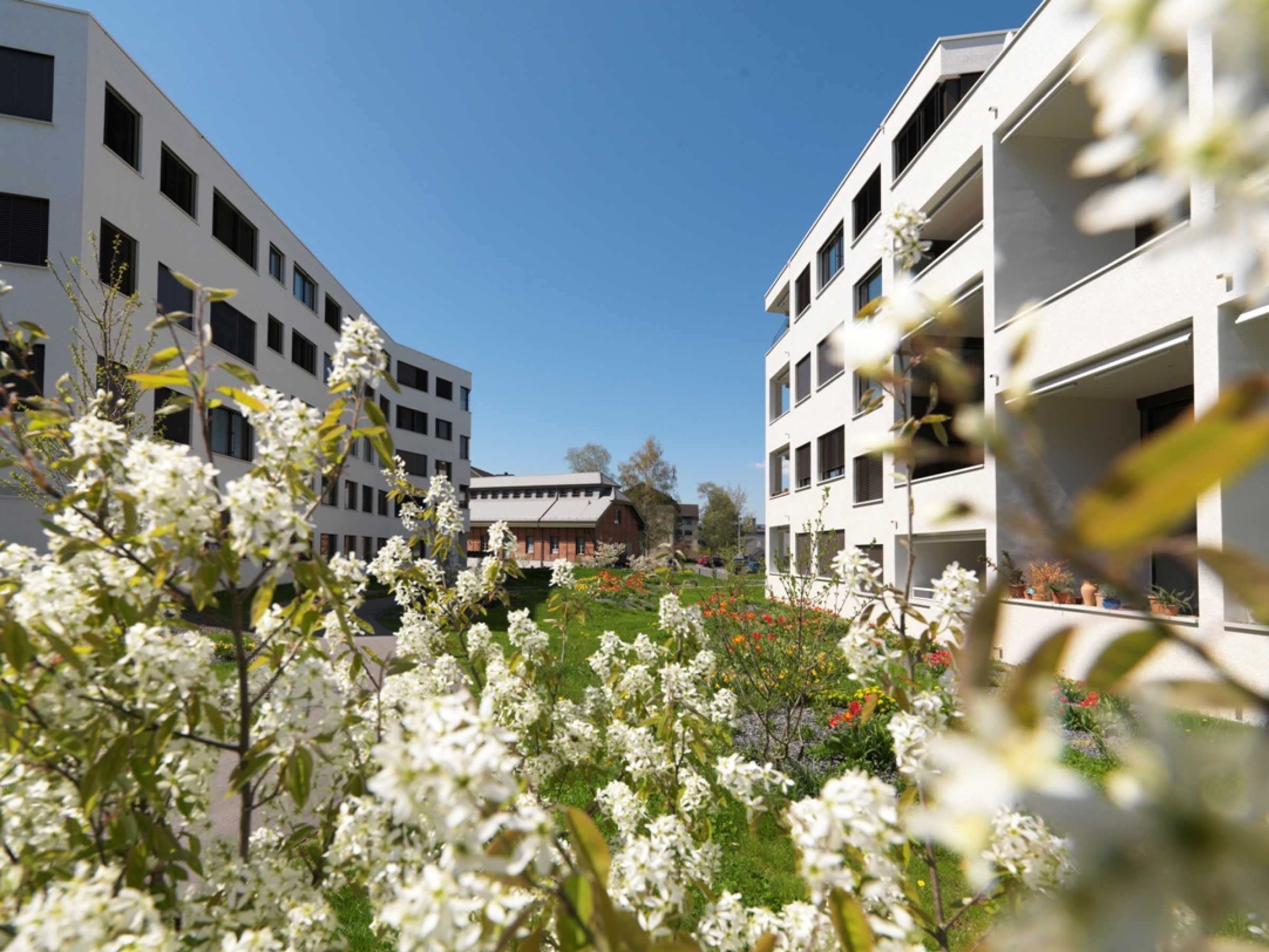 The outdoor space of the Suurstoffi site received an award for its nature-oriented design (Photos: Zug Estates)