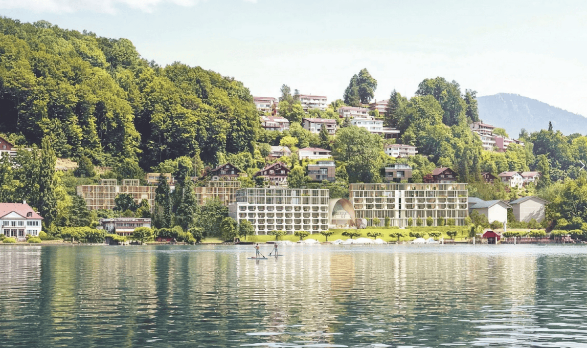 Herzog & de Meuron are planning 100 hotel rooms, 36 apartments and a park on Lake Lucerne. Realization at the beginning of next decade at the earliest.
