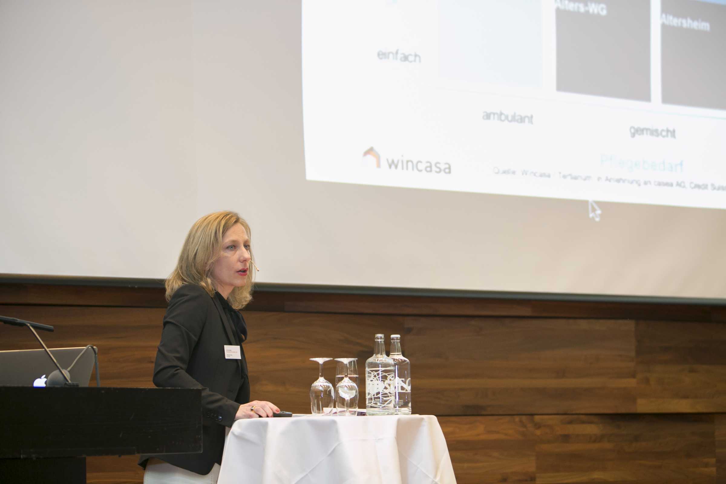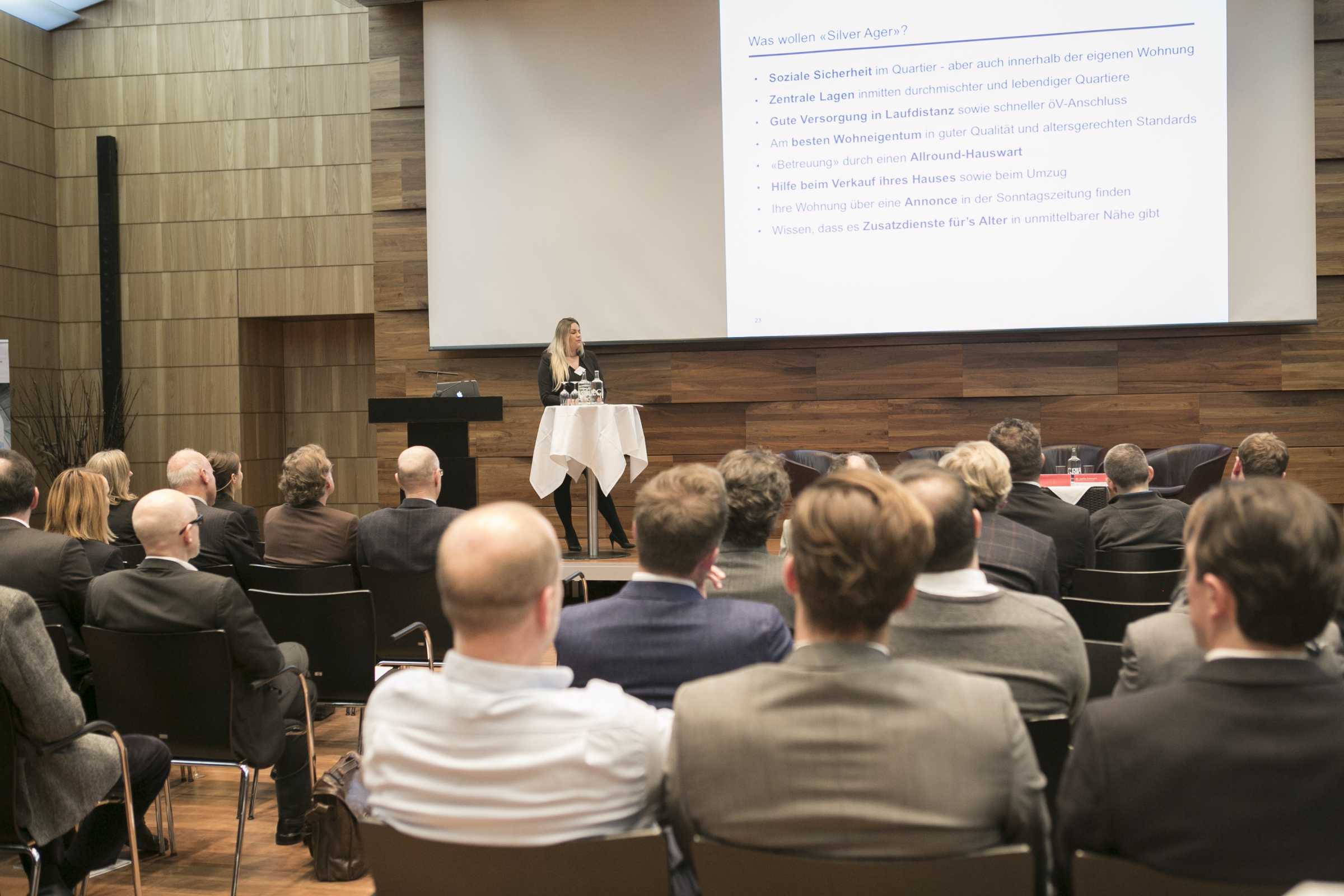 Mobimo a ensuite expliqué son expérience lors de la création du quartier Aeschbach à Aarau. Elle a confirmé un autre résultat de l'étude, à savoir que les seniors ne sont pas prêts en soi à payer de manière forfaitaire pour une infrastructure dite "pour personnes âgées". Ensuite, Alexandra Bay, du prestataire de services immobiliers Wincasa, a également souligné que les fournisseurs de résidences pour seniors, comme Tertianum AG, s'étaient d'abord aventurés en terrain inconnu il y a une bonne dizaine d'années avec leurs concepts spéciaux pour les retraités et qu'ils avaient dû procéder à quelques changements par la suite. Selon Bay, les seniors demandent plutôt des offres à la carte plutôt que des formules tout compris pour vivre dans la vieillesse.