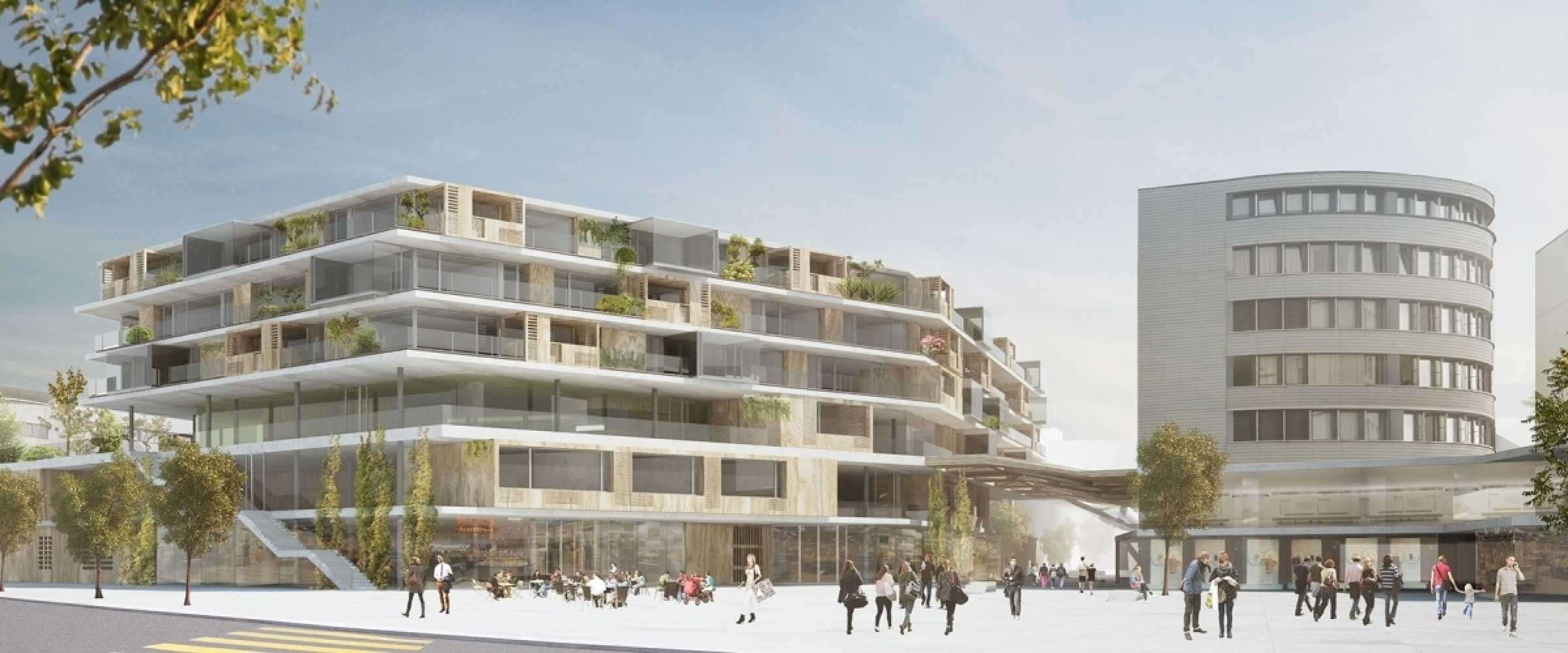 Des bureaux sont prévus au premier étage et 75 logements locatifs seront construits du deuxième au cinquième étage. Le nombre de places de parking sera augmenté de 60 pour atteindre 685 places.