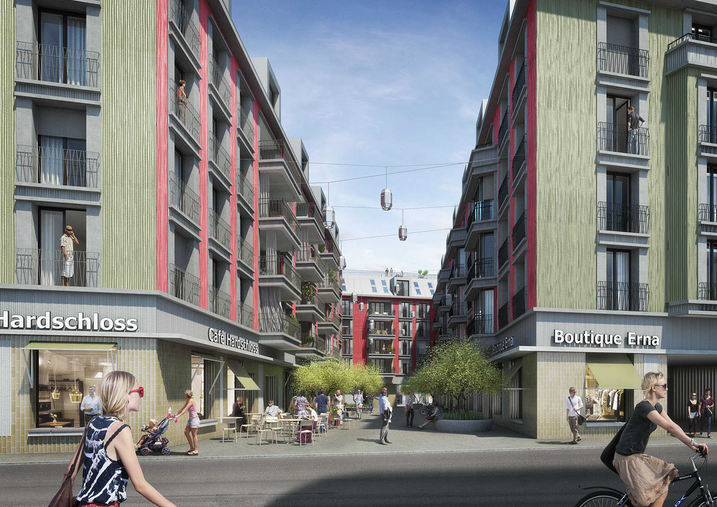 L'intero sito Surber - che comprende gli ex impianti di produzione nel cortile interno e gli edifici residenziali a blocco lungo la Hohl-, Erna- e Sihlfeldstrasse - deve essere rinnovato e riprogettato. Al posto degli edifici aziendali, sei nuovi edifici con 73 appartamenti in affitto (nome del progetto "Wohnen an der Ernagasse"), otto studi e sei spazi commerciali ("Werken im Hardschloss") saranno costruiti entro luglio 2017. I nove edifici residenziali esistenti saranno completamente modernizzati entro dicembre 2016 ("Wohnen am Schlosshof"). Gli studi di architettura di Zurigo Züst Gübeli Gambetti Architekten e Oliv Brunner Volk Architekten sono responsabili del progetto.
